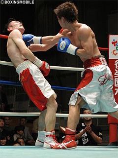 試合:國重はLフライ級9位、福本はSフライ級11位にランク。今回はフライ級の契約ウエイトで日本ランカーが激突。互いにストレートを打ち合い、サウスポー國重の左ストレートが福本の顔面を捉え、オープニングヒットを奪う。ここから國重は左ストレートを狙い、福本は右ボディストレート・左フックを打ち込むべく踏み込むと、両者の距離が詰まり、クリンチの展開に。中盤、福本はクリンチの状態ながら体格差を活かし、左右ボディ・左フックと手数で國重を上回る。7Rには、前に出る福本の右ストレートで國重の膝が落ちる場面も。終盤から前に出て、右ストレート・左フックをヒットさせた福本がポイントを奪い、ランカー対決を制した。★