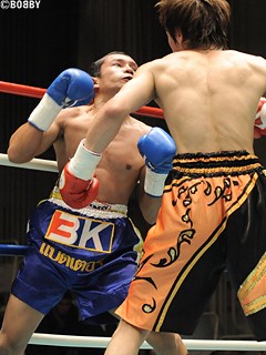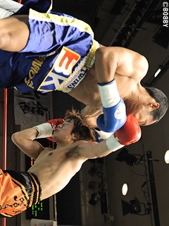 試合:清水は向かい合うと頭一つ小さいペッエークに、素早いジャブで一気に先手を奪う。ペッエークも突っ込みながらワンツーをヒットさせるが、清水がジャブ・左ボディを打ち込み下がらせる。清水は左を上下に打ち分け、ボディでダメージを蓄積させると、ワンツー・右ストレートでポイント。4R、清水の左ボディにロープを背負うペッエークに、右ストレート・左フックと連打を浴びせ、レフェリーストップを呼び込んだ。★