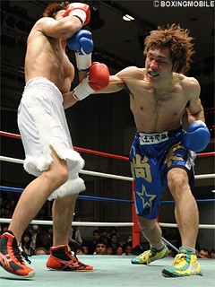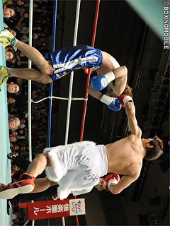 試合:長島の豪腕が炸裂!開始早々、長島のワンツーが中村の顔面を打ち抜き、この一発で主導権を奪った長島は、ワンツー・ワンツーフックで立て続けにダウンを奪う。2R、中村もワンツーで反撃を試みるも、自信に満ちた表情で打ち込む長島のワンツーに3度目のダウン。完全に試合を掌握した長島は3R、右アッパーでアゴを跳ね上げると中村はしゃがみ込み、この日4度目のダウン。ここで陣営からタオルが投げ込まれた。★