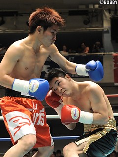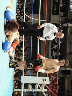 試合:ジャブの刺し合いからスタートも、原がジャブから右ボディストレートを突き刺す。ここで強引に距離を詰めるキッティカムに、原のコンパクトな左アッパーがカウンターでアゴを打ち抜く。この一撃でキッティカムは糸が切れた人形のように崩れ落ち、カウントが数えられるも、レフェリーは途中で両手を交差。原が左アッパー1発で仕留める衝撃KO勝利となった。★