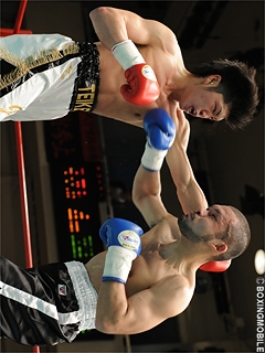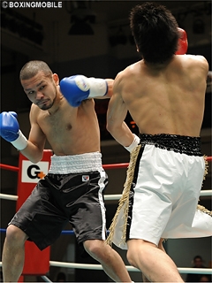 試合:ウェイトを効かせた重そうなパンチの濱名。ガードを固める能勢は、ジャブ、ワンツーで先手を取られリズムが作れず、積極性に欠けてしまった。