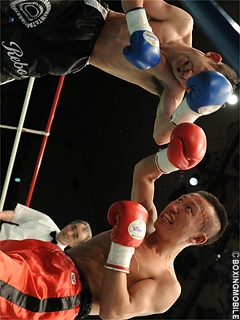 試合:元木の左ボディがポイントを奪う。元木が的確に左ボディをレバーに突き刺せば、岨野も距離を取って左フック・右ストレートで反撃を試みる。岨野は打っては離れのボクシングで距離を活かしたかったが、元木が前に出て左ボディ・ワンツー連打を打ち込みポイントを奪った。