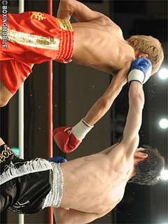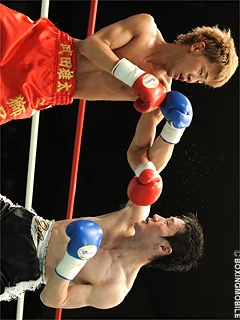 試合:中川の足が勝利を呼び込む。低い姿勢から前に出る岡畑に対し、中川はジャブからステップしてサイドに動く。執拗にプレスを掛ける岡畑は左ストレートで仕掛けるが、中川も右ストレートで応戦。岡畑のプレスに中川は足を使い、距離を取って接近戦に持ち込ませず、単発ながら右ストレート・ワンツーでポイントを奪った。