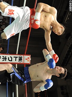 試合:デビュー同士の一戦。あぐーがワンツー・右ストレートで仕掛けるも、石川はしっかりとブロック。ガードの低いあぐーにワンツー連打を打ち込む。この連打であぐーは腰から砕け、大の字になってしまった。