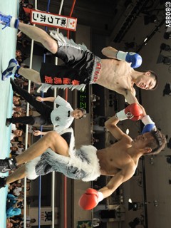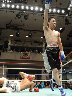 試合:佐藤の右ストレートが炸裂!ジャブの刺し合いの中、佐藤の右ストレートが一瞬早くクリーンヒット。この一発でぐらつく舟木に、佐藤はワンツー連打。一旦はクリンチで凌いだ舟木だが、距離を取った佐藤の右ストレートが打ち抜かれ、膝から崩れ落ちる。この一撃で10カウントが数えられた。★