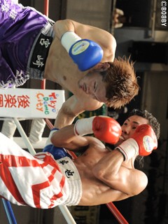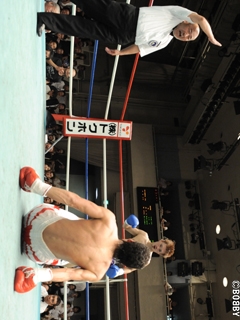 試合:渡邉が薄氷の勝利!距離を取りたい渡邉に対し、宮崎は右ストレート・左フックで接近戦を仕掛ける。ここで渡邉は左ボディ・左アッパー・左フックと左を巧みに打ち分ける。中盤、宮崎はワンツーで強引に前に出るが、渡邉はがっちりブロック。ジャブで距離を取り、コンパクトなワンツー・左アッパーでポイントを奪う。だが7R終了間際、接近戦を仕掛けた宮崎の左フックがアゴを打ち抜き、渡邉は痛恨のダウン。立ち上がる渡邉はなんとか立て直し、僅差判定でランキングを守った。★