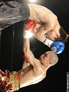 試合:田口がボディを軸に攻めれば、長田もワンツーアッパー、フック。最後まで激しくパンチを交わした。