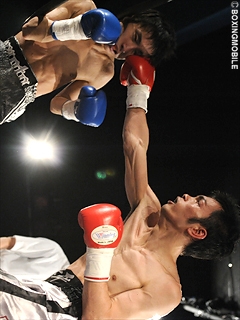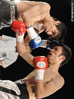試合:勢いよく打ち合いを挑む高梨だが、山口は冷静に右を合わせて高梨の膝を折ると、さらにワンツーでダウンを奪った。
