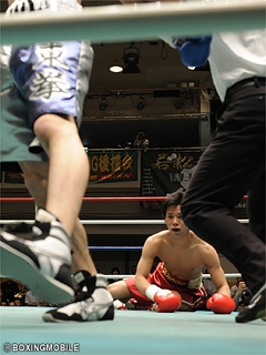 試合:スピードのある両者だが、岡本が右のカウンターでダウンを奪うと、最後はワンツーをまとめレフェリーストップ。