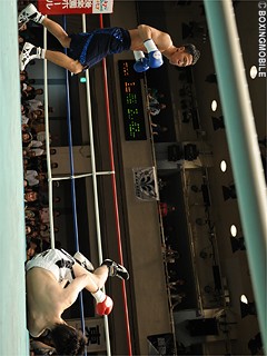 試合:開始30秒、サウスポー荻野がストレートでダウンを奪うと、立ち上がる長谷川にまたも左を合わせKO勝利。