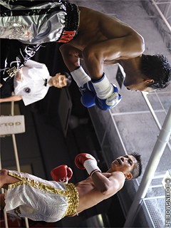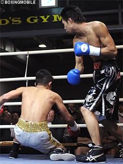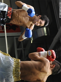 試合:1R、ワンツーで真っ直ぐ前に出る山口知晃に、山口祥之が右でダウンを奪う。その後もプレスをかける山口知晃に、山口祥之が迎える展開。だが、2Rに遇バツで山口祥之が眉間を負傷。この傷が深くなり、3R負傷判定となった。