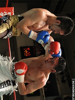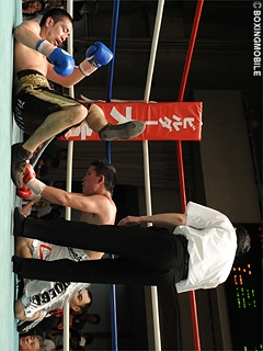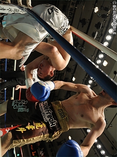 試合:両者距離が噛み合わず。ジャブ・ワンツーで距離を測ろうとする十二村だが、距離を詰める加藤の頭が当たり、早くも十二村は左目上をカット。十二村は単発ながら左フック・右ストレートをヒットさせるも、強引に前に出る加藤に距離を潰される。ここから両者はクリンチが多くなると、十二村はホールドが重なり4Rに減点1。十二村は最後まで距離を詰める加藤の戦いに苦しむも、単発ながら右ストレート・左フックをヒットさせ、僅かにポイントで上回った。