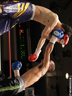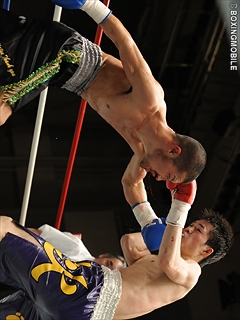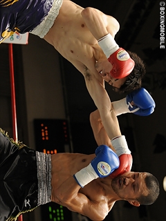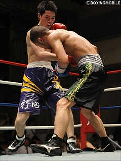 試合:岩崎が約3年振りの勝利!サウスポー岩崎がワンツーを上下に打ち分け主導権を奪う。先手を取られた片桐は前に出るが、岩崎は左ストレートを上下に散らし左フックをヒット。中盤、片桐はプレスからワンツー・右ストレートを浴びせるも、岩崎はバックステップで連打を許さず、左ストレート・右フックを打ち返す。最後まで距離を保った岩崎がワンツー・左ストレートでポイントアウトし、08年7月28日の牧島戦以来の勝利を掴んだ。
