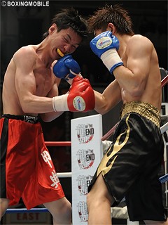 試合:ワンツーの打ち合いは有効打で福地が上回り、最後はワンツー連打でレフェリーストップ。