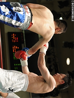 試合:旭は2R、手数のユンを左フックで倒すと、その後も連打で攻め立てる。3R、ユンは左ボディに的を絞るが、旭が冷静にディフェンス。旭は4R、打ち合いの中で今度は右ストレートでダウンを奪うと同時にタオルが投入された。