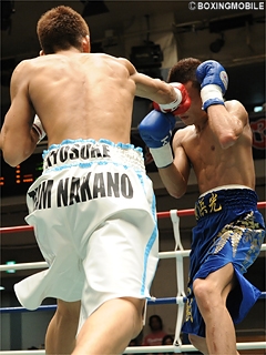 試合:金子が優勢点で生き残る。互いにジャブを刺し合い、序盤は距離を探る展開。中盤、ジワジワと吉田がプレスを掛け、右ストレートをヒット。しかし打撃戦の展開から、金子の右ストレート・左フックで吉田は膝を落とす。両者は右ストレート・右アッパー・左フックと打ち合い、一進一退の攻防を繰り広げる。最終6R、吉田が右ストレートで金子の顔面を仰け反らせ、ワンツー・左フックでポイントを巻き返す。ジャッジの判定は1-0ドローとなるも、最強後楽園ルールにより優勢点を金子が引き寄せ、決勝に駒を進めた。