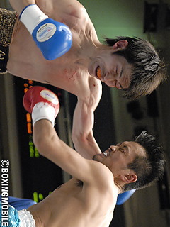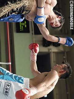 試合:1R、偶然のバッティングで掘が左目上をカット。その後、その出血に悩まされながらの戦いになる。竹内が決め手に欠くものの、手数で上回る展開のなか進行。そして5R、その傷のドクターチェックが入りここでストップ。負傷判定となり3-0で竹内が勝利した。