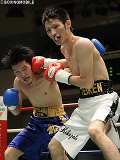 試合:左のカウンターを狙うサウスポーの喜久里だが、右クロスで飛び込む齊藤に中々タイミングが合わず、懐に入られパンチをまとめられる。前半は単発気味の喜久里だったが、後半に入るとワンツーが決まりだし、粘る齊藤に有効打で上回り判定勝ち。