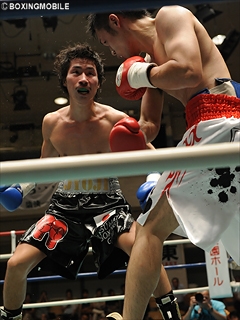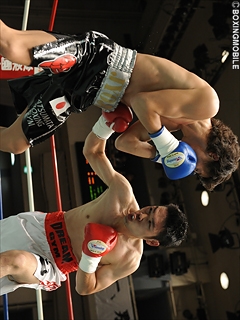 試合:一発のある千波だが、得意の右フックは振りが大きい。対する三浦は、的確にワンツー・ボディのヒットを重ねる。だが3R、接近戦から千波の猛烈なワンツー連打で、三浦は痛恨のダウン。その後も激しく打ち合う両者だが、千波がダウンポイントを守り判定勝利。