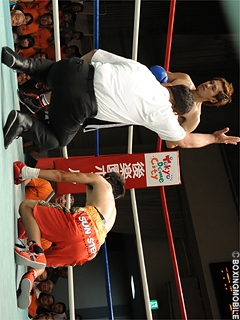 試合:高橋が逆転TKO勝利!高橋がワンツーで詰めるが、斉藤はバックステップで距離を作り、カウンターの右フック・右ストレートをヒット。1R終了間際、一瞬下がる高橋に、斉藤は飛び込みながらの左フックでダウンを奪う。ゴングに救われた高橋は、ショートの左右アッパー・左フックとスピードで応戦すれば、斉藤は単発ながら強打の左フック・右ストレートで仰け反らせる。中盤、高橋は回転の速い左右アッパー・左右ボディと手数で上回ると5R、ゴングと同時に思い切り良く踏み込み、ワンツーでダウンを奪い返す。立ち上がるも斉藤のダメージは深く、ワンツー・左右アッパーを浴び防戦一方となってレフェリーストップ。★