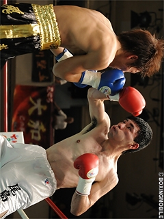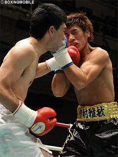 試合:プレスを掛ける中村に対し、サウスポー尾島は的確に左ストレートをヒットさせ顔面を仰け反らせる。中村は右ストレート・左ボディと手数で応戦するが、尾島は堅いブロックとバックステップでヒットを許さず、距離を取っては左ストレート・右フックを浴びせる。尾島が的確に左ストレートを打ち込み、中村からポイントを奪った。準決勝は、5戦全勝の村田と対戦。