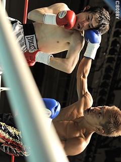 試合:田畑がワンツーで仕掛けるもパンチが流れ、勅使河原に左フック・左ボディを打ち込まれる。中盤、ワンツー・左フックを打ち合うも、勅使河原が的確に右ストレート・左ボディで田畑をコーナーに押し込み、ワンツー・左フックを浴びせた。