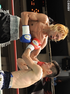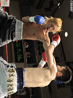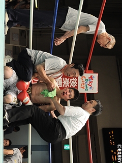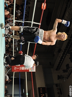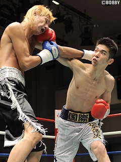 試合:石田の右ストレートが打ち抜く!ランカーに挑戦の橋本は、ワンツーで切り込むも、石田がジャブで距離を保ち、ワンツー・左フックで早くもダウンを先制。2R、ワンツーで反撃を試みる橋本だが、石田は固いブロックでヒットを許さず、左フックを打ち込む。この一撃で足元が揺れる橋本を見逃さず、石田はロングレンジの右ストレートを顔面に突き刺すと、堪らずレフェリーが割って入った。★