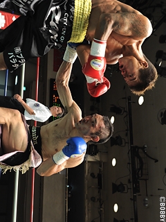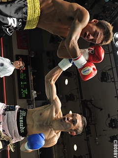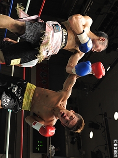 試合:益田のワンツーが打ち抜く!日本ランカーとなり初戦の益田は、リーチを活かしたワンツー・右アッパーで先制。安田はプレスを掛け前に出るも、益田のワンツーに押し戻され、左ボディ・右ストレートを打ち込まれる。序盤に主導権を奪った益田は、スウィッチで安田を惑わせ、巧みなバックステップでヒットを許さない。すると5R、突破口を切り開きたい安田は強引に踏み込むが、益田はバックステップで距離を作り、カウンターのワンツーでダウンを奪う。立ち上がるも安田のダメージは深く、益田は一気のワンツー連打でレフェリーストップ。益田が日本ランカーの実力を見せつけた。★