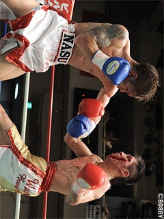 試合:奈須の右ストレートが切り裂く!ジャブで距離を取りたい金城に対し、奈須は圧力を掛けワンツーで飛び込み、左右ボディ・右ストレートで主導権を奪う。金城は足を使い、右ストレートで応戦するも、奈須はラウンドを重ねるごとに圧力を増し、左右ボディ・右ストレートを浴びせる。すると5R、奈須の右ストレートが顔面に打ち込まれると、この一撃で金城は左目上を大きくカット。一旦は試合が再開されるも、ドクターは試合続行不可能と診断。奈須が右ストレートで金城の左目上を切り裂き、負傷TKOで日本フライ級ランカー対決を勝ち上がった。★