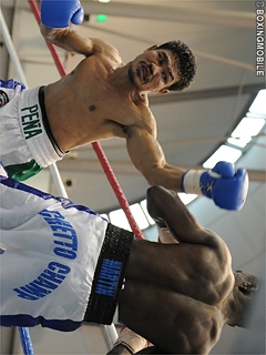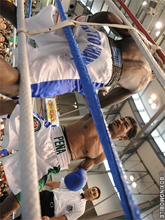 試合:ひたすら飛び込んで左右スイングを振り回すサウスポーのペーニャ。前半タイミングが掴めなかったマーチンも、後半はワンツー、フックで迎え、右アッパー、右フックを合わせる。それぞれ1回のダウンを許したが、終始突進したペーニャが判定勝利。