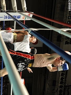 試合:ワンツーで勢いよく前に出る山本に、川奈は左右フックで迎える立ち上がり。次第に頭を付けての打ち合いとなるが、川奈がディフェンスで一歩勝る。手数こそ山本だが、有効打は川奈。5R、川奈に圧され始めた山本は、ロープ際でパンチをまとめられ、レフェリーストップ。川奈は初KOで6勝目を上げた。★