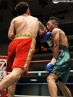試合:酒井が競り勝つ。ジャブの刺し合いから、右ストレートで距離を探る慎重な立ち上がりも前半、外村が左フック・ワンツーで主導権を奪いに出れば、酒井も右ストレートを上下に打ち分ける。後半、外村が右ストレートで前に出ると、酒井は左ボディ・右ストレートで応戦し、両者の左フック・ワンツーが顔面を捉える。最後まで一歩も引かない打撃戦となるも、酒井がワンツー・左フックと手数で上回り、ポイントで競り勝った。