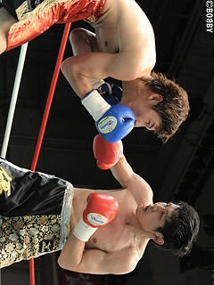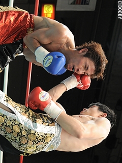 試合:山元が手数で上回る。立ち上がりこそ積極的にワンツー・左フックを打ち合ったが、次第に距離が近くなり接近戦の展開に。中盤以降、山元と谷口は左フック・右アッパーを繰り出すも、クリンチが多くなってしまう。両者決定打を奪えず判定となったが、山元が手数で競り勝ちポイントを奪った。