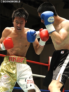 試合:ゴングと同時に両者はワンツー・フックを打ち合う。ここでサウスポー大和田が右フックを先制し、住友の膝を落とす。しかし住友も下がらず接近戦を仕掛け、大和田も応戦。中盤から互いに頭をつけての左右ボディ・アッパーの打ち合いも、大和田が右アッパーで住友にロープを背負わせ、左ストレートでポイントを奪った。