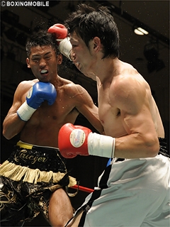 試合:下川原の右ストレートが打ち抜く!ミドルレンジから、下川原のフリッカージャブが出田の顔面を捉える。出田もワンツーで前に出るが、下川原はバックステップで距離を保ち、コンパクトな右ストレート・左フックをクリーンヒット。2R、下川原の右ストレートに出田は左目上をカット。下川原は距離の長いジャブでリズムを作り、強引に詰める出田に右ストレート・右アッパーを浴びせ、ポイントを奪って行く。出田も最後までワンツー・左フックで距離を詰めようと試みるが、下川原が巧みなバックステップで連打を許さず、右ストレート・左ボディ・右アッパーを突き刺し、ランカー対決を制した。★