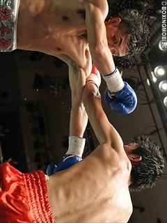 試合:立ち上がり、坂本が大振りの左右で攻め込むと、ジャブを突いていた熊野も釣られる形で応戦。序盤から消耗戦となり、3Rには早くも坂本が失速。熊野はこの隙にワンツー・ボディでポイントを奪う。中盤、坂本は持ち直すと、ジャブから左ボディ・右ストレートで反撃。前に出る熊野と激しく打ち合う。さらに坂本は、終盤に入ると距離を取り、コンパクトなワンツーからボディ・アッパーをヒットさせるが、終始前に出続けた熊野が僅差で判定勝利となった。