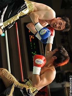 試合:世界ランカー田中は、勝てば日本Lフライ級王座挑戦が決まる大事な一戦。だが立ち上がり、王座挑戦へ弾みをつけたい田中は、距離を取るサウスポー國重に対し低く入ってしまい、頭が國重の鼻と激突。堪らず鼻を押さえる國重に1分間の休憩が与えられる。再開後、身長優位の國重は足を使い、ワンツーから左ストレートをヒットさせリズムをとる。田中も飛び込んでの右オーバーハンド、右フックをヒットさせるが、國重のステップにより単発に終ってしまう。中盤、國重は右に回り、ジャブ・ストレートで田中を懐に入れず、リズム良くパンチを上下に打ち分ける。國重はこのままペースを握り続け、僅差判定ながら世界ランカーを破る金星を挙げた。★