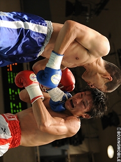 試合:序盤、小日向が的確なジャブからワンツーに繋げ攻勢。距離が空くと危険と見た中澤は、強引に接近戦に持ち込みボディを集中打。ロープに押し込まれる小日向も、接近戦ではアッパーを有効にヒットさせ激しく打ち合うが、不利な序盤から執念を見せた中澤が、手数で勝利をもぎ取った。