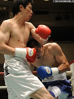 試合:距離を取りジャブワンツーの入澤に、旭がワンツーでプレスをかけると2R、右クロスでダウンを奪い、続けてワンツー連打でロープに弾きレフェリーストップ。勝ち星全てKOの旭が、強打を見せた。