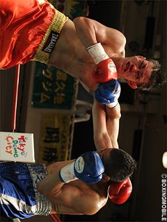 試合:1R、あぐ~はジャブで宮崎を捉えるとワンツーを連打し、2Rにはパンチで宮崎の左目上をカット。この傷が深くなり、3Rにレフェリーストップとなった。