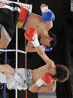 試合:石田の左ボディが炸裂!シンワンチャーはワイルドな右ストレート・左フックで威嚇するも、石田が冷静にジャブで距離を保ち、右ストレート・左ボディを打ち込む。2R、石田がリーチを活かし、ワンツー連打でシンワンチャーにロープを背負わせ左ボディを突き刺すと、シンワンチャーは堪らずうずくまり10カウントを聞いた。