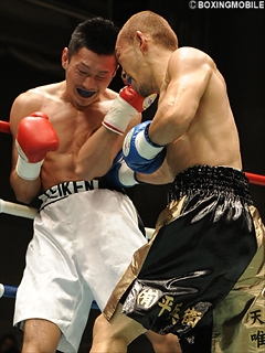 試合:スィング気味のフックで前に出る下薗に、本間はガードを固めコンパクトな返し。下薗が左右フックで強引に距離を潰すと接近戦となり、本間は得意のショートアッパーを軸に応戦。ラストまで激しく打ち合うが、下薗が手数で上回り判定勝利。決勝は本間の同門、優勝候補の横山と激突。