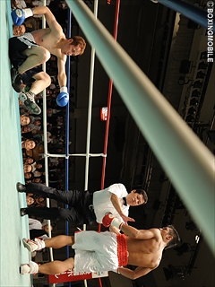 試合:開始と同時に、横山が強烈な左ボディを打ち込む。横山はレバーを狙い続け、木村の右脇腹を腫らす。木村も下がらずに左右フックを返すが、2Rにボディからの右ストレートでダウン。すぐに立ち上がり、ワンツー連打で反撃するが、最後はまたも横山の右が入り、2度目のダウンとなった。横山は8勝目で全てKO勝ち。