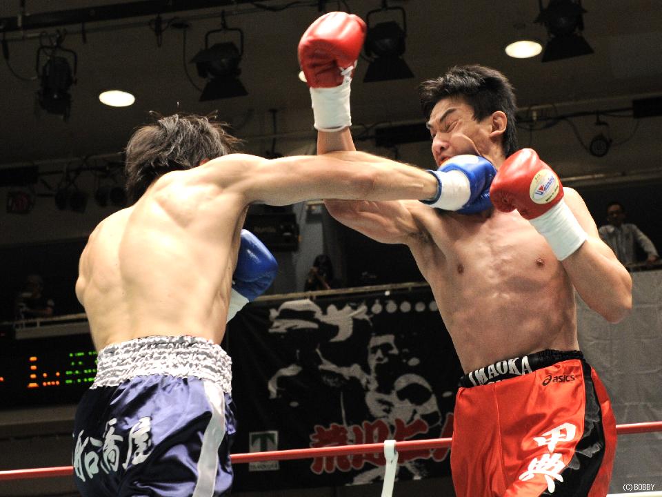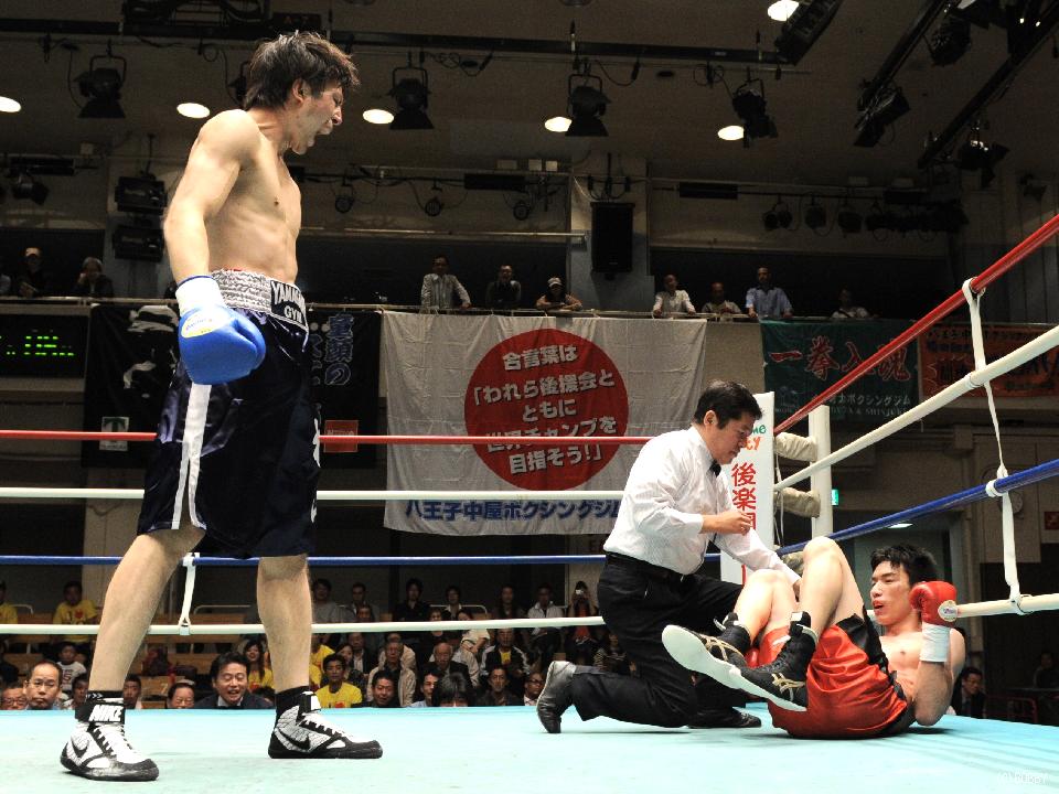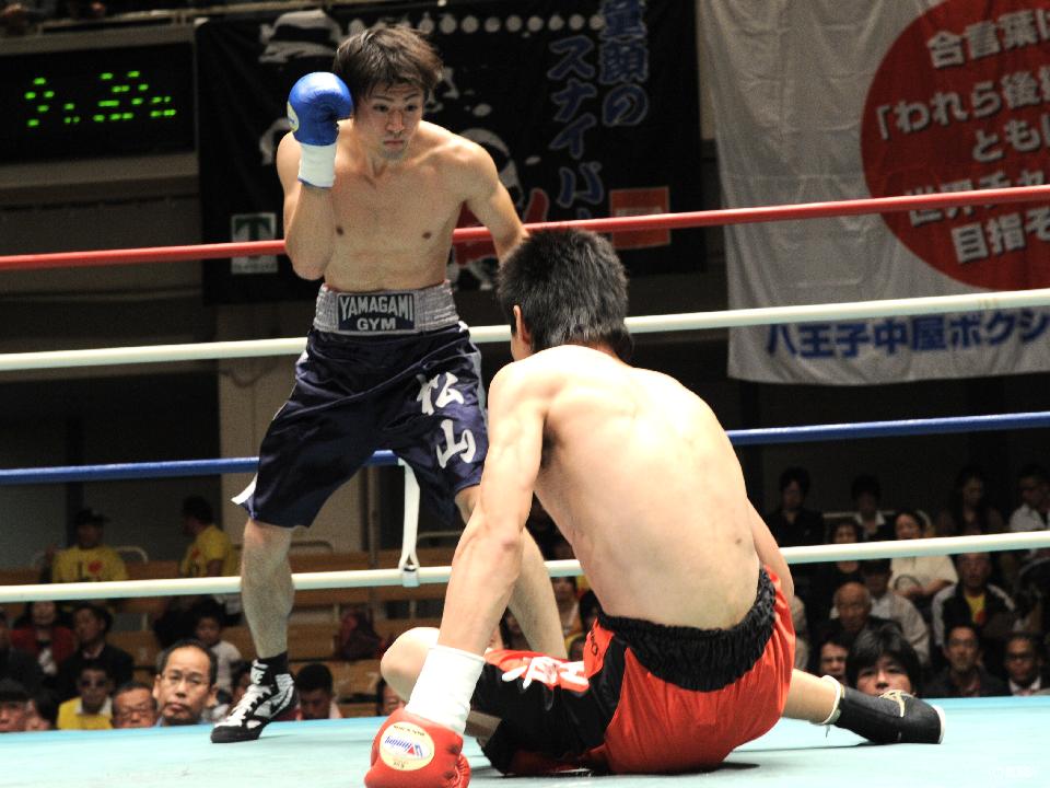 試合:スピードのある両者だが、松山は左フックでダウンを先制すると、立ち上がる大村にキレのあるワンツーを打ち込み、2度目のダウンを奪ってKO勝利。3勝目を上げた。