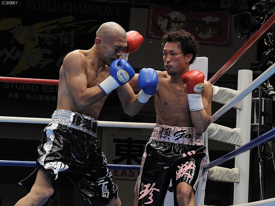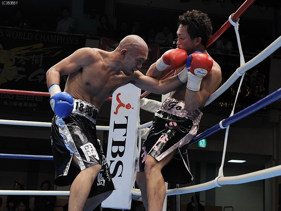 試合:小澤のワンツーに軍配が上がる。ジャブの連打で小澤が仕掛け、田中にワンツー・右ストレートを打ち込み主導権を奪いに出る。田中も左フック・左右ボディで応戦するが、小澤の左ボディ・右ストレートでロープを背負ってしまう。中盤、田中はロープに詰まりながらも、左右ボディ・左右フックで小澤を押し返し接近戦の展開に。ここから両者はワンツー・左右フックを打ち合う意地の張り合いとなるも、的確なワンツーを浴びせた小澤がポイントを奪った。