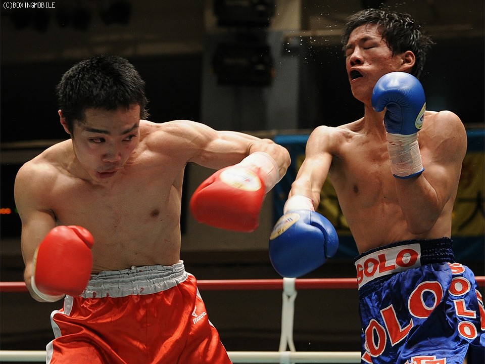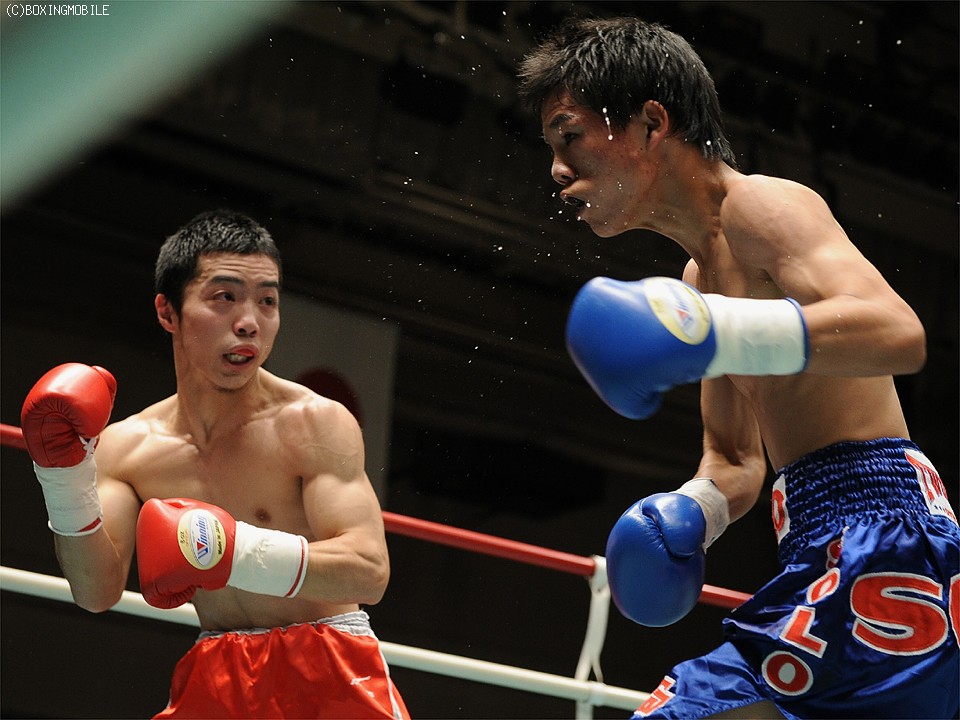 試合:左右フックで仕掛ける田中に対し、渡辺はスピードを生かしたジャブ・ワンツーで迎え撃つが、徐々に田中の距離で戦ってしまい、2R終了間際に右を合わされダウン。最後まで圧力を掛け続けた田中は右アッパーもヒットさせ、有効打で上回り判定勝利。