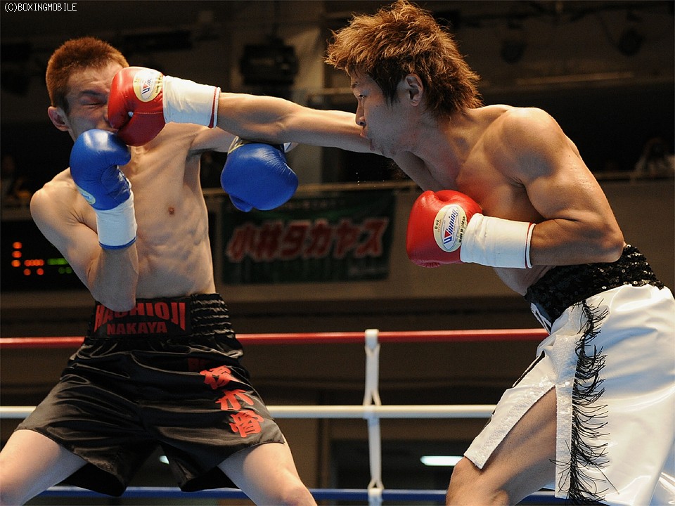 試合:山口が殊勲の勝利!!ランカー挑戦の山口は、ワンツー・左ボディで切り込む。小林はジャブで距離を保ち、詰める山口に対し右アッパー・右ストレートで仰け反らせる。中盤、山口は距離を潰し小林を乱打戦に引きずり込み、左右フック・左ボディでロープを背負わせる。小林はジャブ・ワンツーで距離を取ろうとするが、山口はプレスを掛けインファイトの展開に。終盤、山口が左右フック・左右ボディで攻め込めば、小林も的確な右ストレート・右アッパーを浴びせる。最後まで山口が前に出続け手数で上回り、判定でランカー小林を破る金星を挙げた。★
