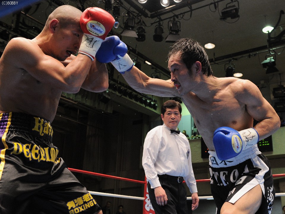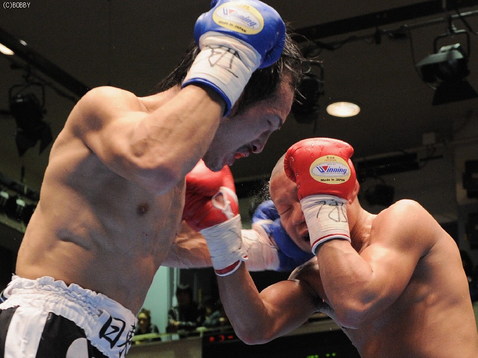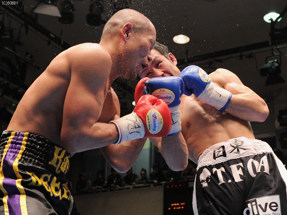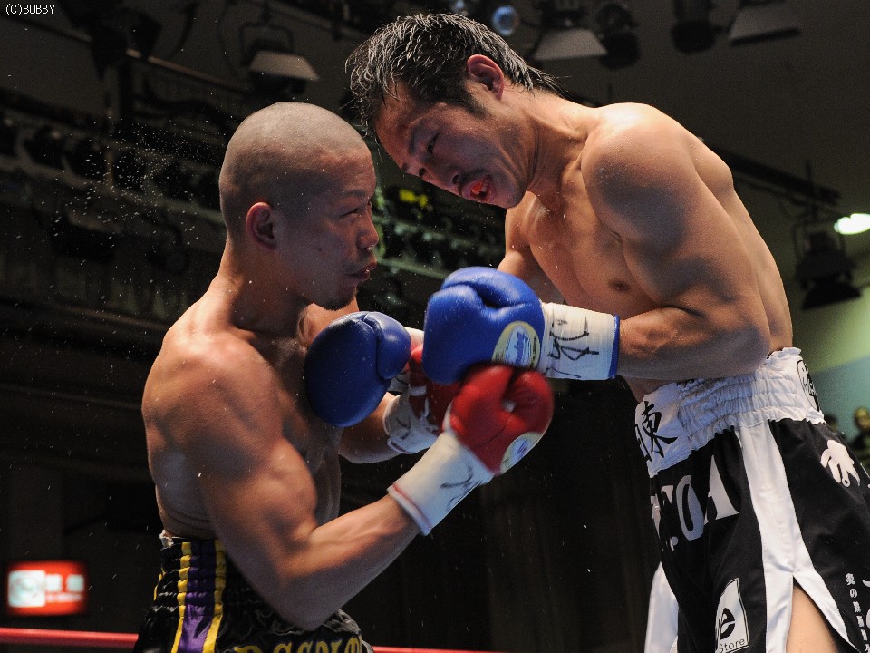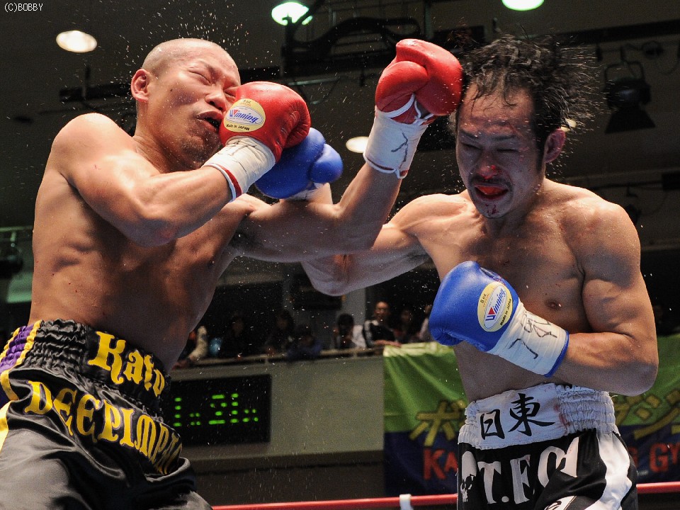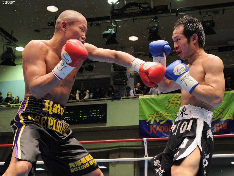 試合:加藤が薄氷の初防衛!!序盤、王者・加藤はリング中央でドッシリと構え、挑戦者・近藤を迎え撃つ。ここで近藤は足を使い左右に動き、ジャブ・右クロスで仕掛けるが、加藤は固いブロックでディフェンス。両者2度目の対戦であり、手の内を知り尽くしているのか、互いに慎重な立ち上がり。中盤、王者はジワジワと圧力を掛けるが、挑戦者は足を止めずジャブでリズムを作り、左ボディ・右クロスでポイントを奪う。加藤は圧力を掛けるも距離を詰められず、苦しい試合展開が続く。終盤、近藤は距離を保とうと動くが、加藤は圧力を増しワンツーで距離を詰め、右ストレート・左フックを打ち込む。加藤が手数・有効打でポイントを挽回し、僅差判定で近藤を退け、日本ライト級王座V1防衛に成功した。