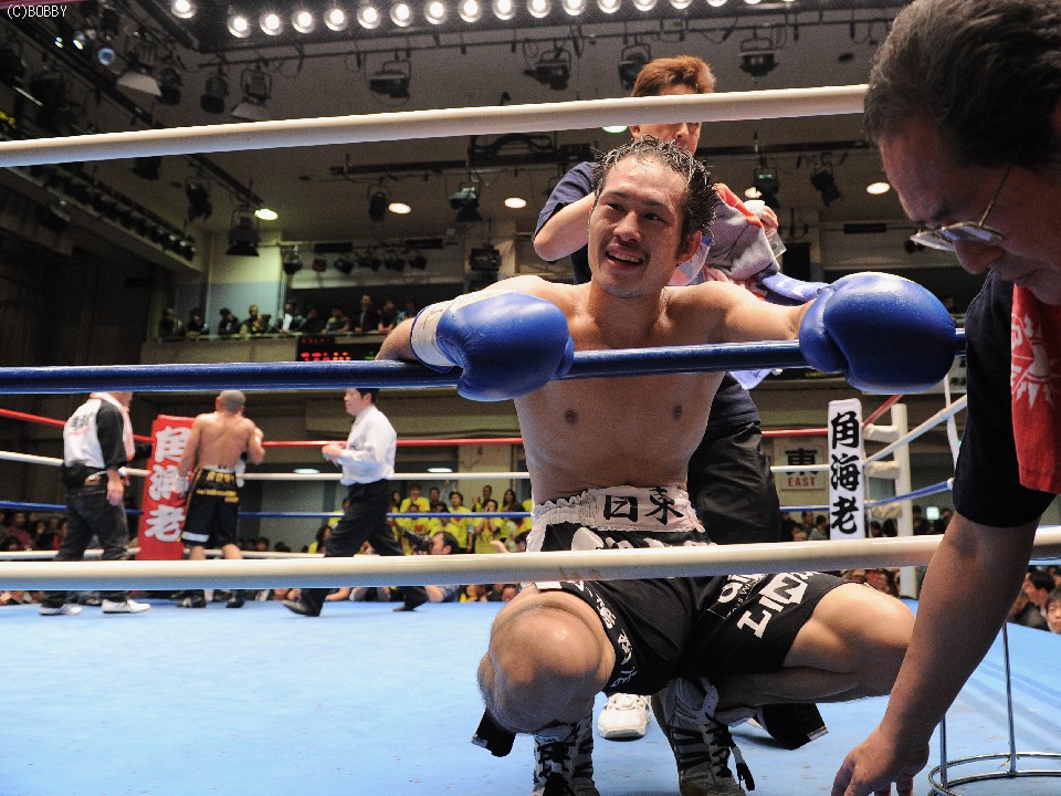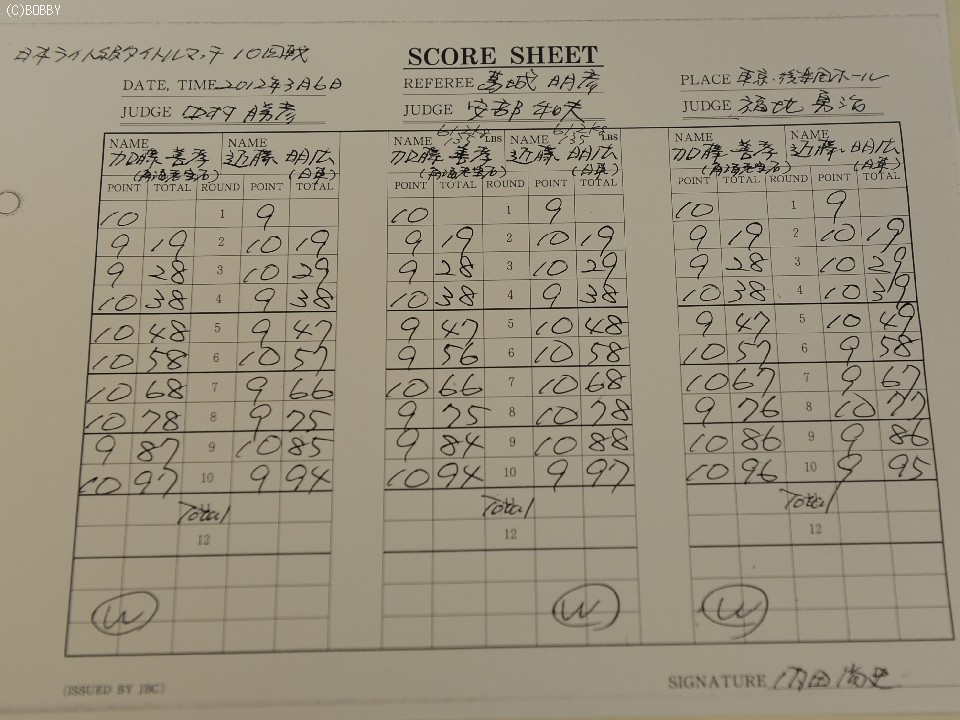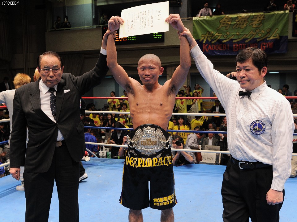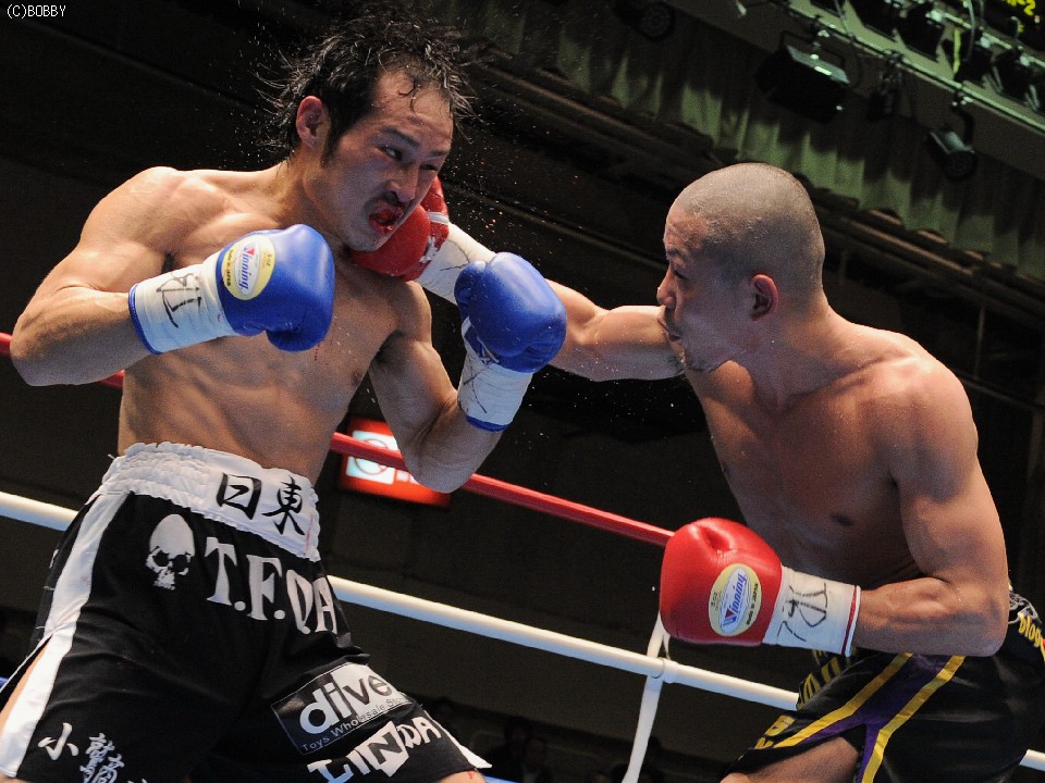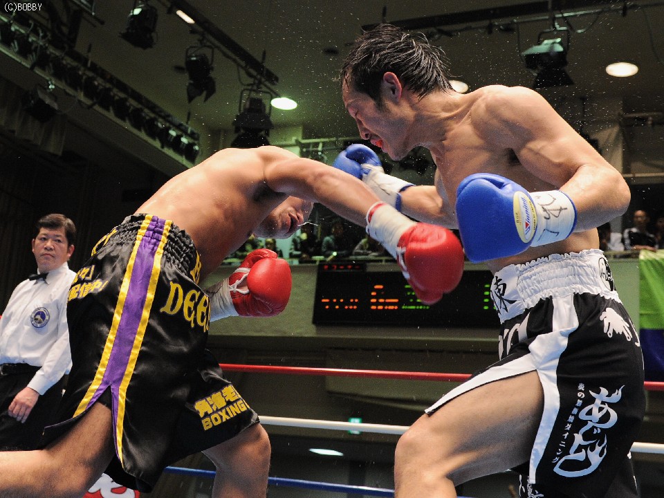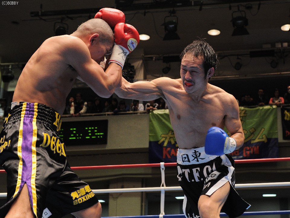試合:加藤が薄氷の初防衛!!序盤、王者・加藤はリング中央でドッシリと構え、挑戦者・近藤を迎え撃つ。ここで近藤は足を使い左右に動き、ジャブ・右クロスで仕掛けるが、加藤は固いブロックでディフェンス。両者2度目の対戦であり、手の内を知り尽くしているのか、互いに慎重な立ち上がり。中盤、王者はジワジワと圧力を掛けるが、挑戦者は足を止めずジャブでリズムを作り、左ボディ・右クロスでポイントを奪う。加藤は圧力を掛けるも距離を詰められず、苦しい試合展開が続く。終盤、近藤は距離を保とうと動くが、加藤は圧力を増しワンツーで距離を詰め、右ストレート・左フックを打ち込む。加藤が手数・有効打でポイントを挽回し、僅差判定で近藤を退け、日本ライト級王座V1防衛に成功した。
