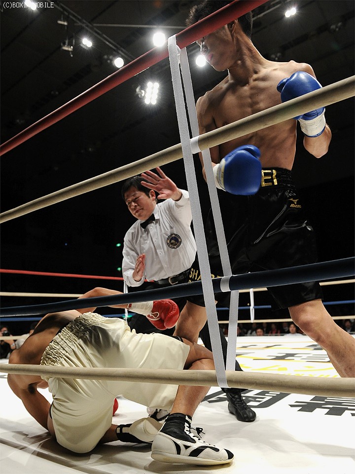 試合:サウスポー根岸が右をコンパクトに使い、最後は左ストレートで倒し即レフェリーストップ。4戦目で初勝利を飾った。